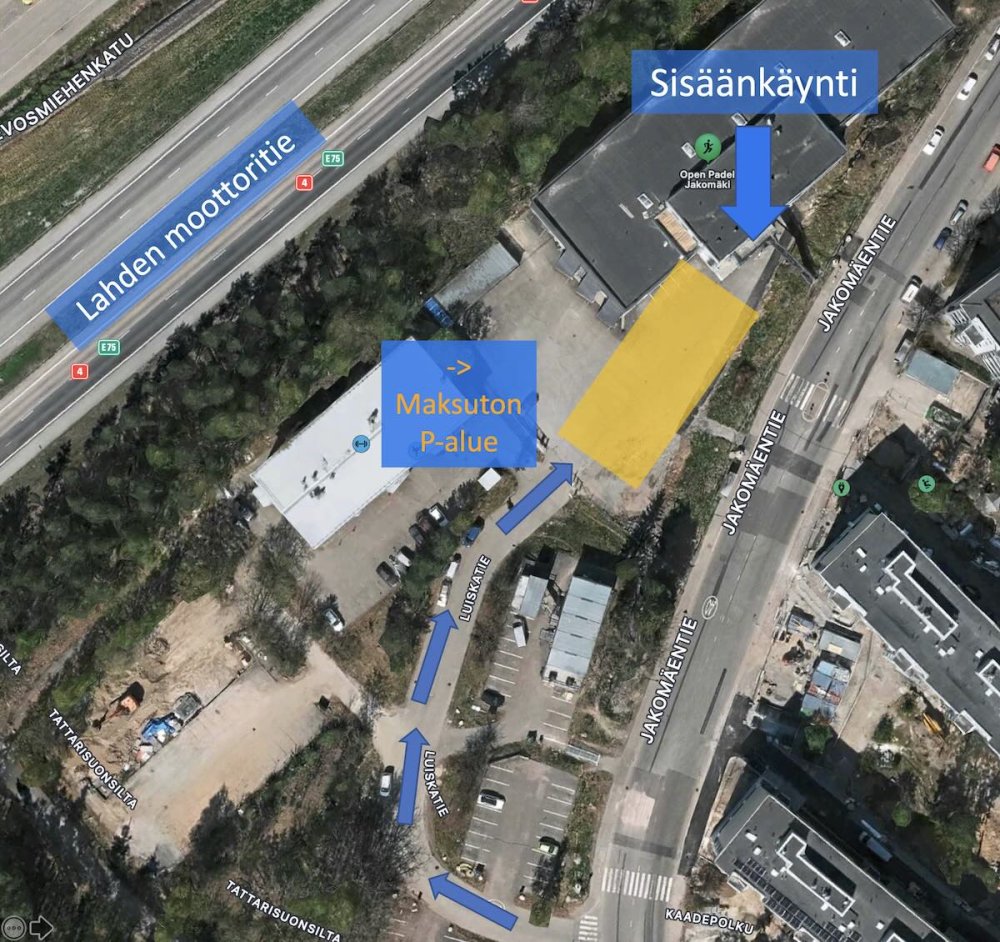 Open Padel Jakomäessä pysäköinti maksutonta